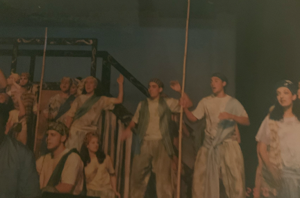 - A picture of me in a musical in high school, after V and I discovered while putting together this segment that WE WENT TO HIGH SCHOOL TOGETHER and did community theater together.