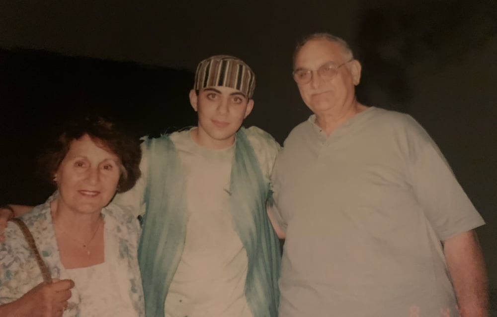 Ok, you’ve made it! Here’s me, the summer after my sophomore year in high school, as a member of the chorus in Children of Eden. I’ll give you a couple extras — including one with my grandma and grandpa, who’s especially on my mind right now, as he died a year ago this week.