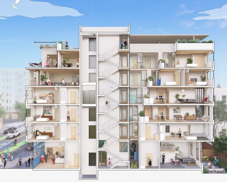 To non-housing policy experts, the question of whether multifamily residential buildings should have one or two staircases might seem arcane. But experts like Eduardo Mendoza at Livable Communities Initiative and CA YIMBY argue that California’s code requirement for two stairwells in all multi-family buildings above three stories has made it very difficult to build high-quality projects on small or constrained sites, without incorporating deadly spaces like double-loaded corridors. Single-stair structures are permissible in other jurisdictions along the West Coast, most notably in Seattle, and overseas. Culver City council recently approved them.